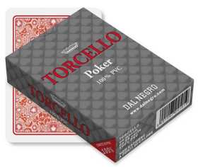 Carte professionali 100% pvc da poker con retro Torcello rosso e astuccio grigio.