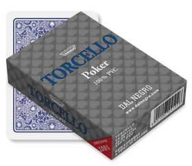 Carte professionali 100% pvc da poker (a seme francese) con retro Torcello blu e astuccio grigio.