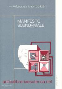 Saggio-poema-poster-novella o forse un invito a sopravvivere, o, ancora, opera lucida, disincantata, bizzarra, consumistica, divertente, ironica, sovversiva o semplicemente paranoica. Decida il lettore. Il volume raccoglie, si innesta e rincorre buona parte delle vicende letterarie e non degli ultimi anni. Manifesto subnormale è un opera letteraria fondamentale per comprendere l'intera opera di Vàzquez Montalbàn e l'infinita saga di Pepe Carvalho. Di fronte alla normalità neocapitalista del produrre, di fronte alla rappresentazione del mondo come un drugstore, la sola reazione possibile passa attraverso l'ironia, l'uso consapevole della parola come arma dissacrante, e attraverso la rottura di ogni schema razionale che il cuore non comprende. Perché la storia non finisce con la caduta delle ideologie, e l'indegna negazione dell'evidente, la subnormalità del quotidiano, verranno assaltati come Palazzi d'Inverno da chi ancora crede nel futuro. Ecco dunque l'invito irresistibile di un intellettuale "subnormale": sopravvivere giocando. |